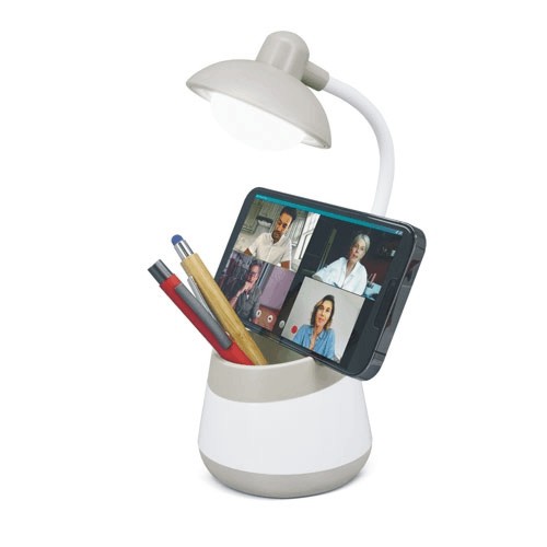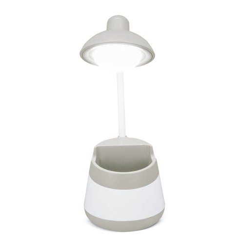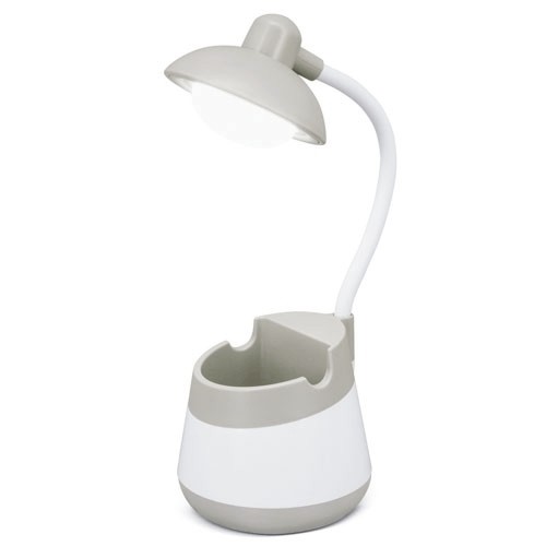 Lâmpada ajustável a 180º, tem um acumulador de carga na qual permite o funcionamento sem estar em modo de carga. Com alojamento para colocar o telemóvel. Inclui cabo de carga. Cada peça em caixa individual. Dimensão da Lâmpada: 9cm x 27cm.