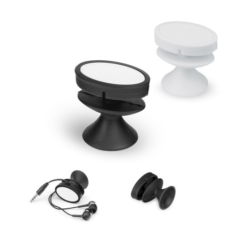 Suporte para telemóvel em silicone com organizador para cabos. 39 x 37 x 25 mm