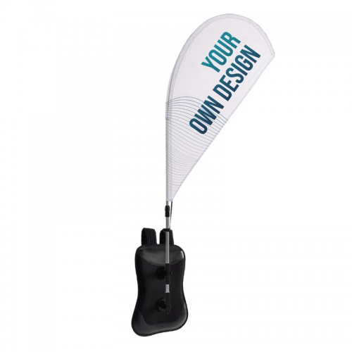 O fly banner é fabricado em tecido 100% poliéster de 115 g/m², personalizável com cores e/ou desenhos à sua escolha.