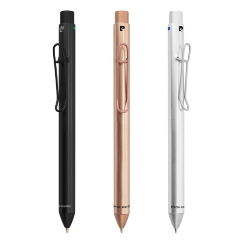 Caneta esferográfica em metal com corpo texturado e pega confortável e antiderrapante.Apresentada em..