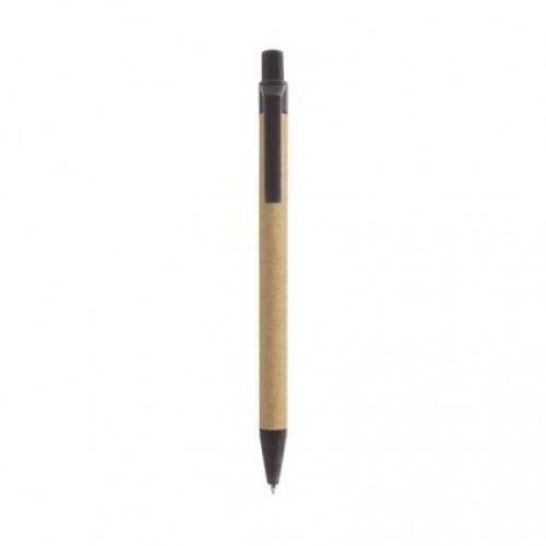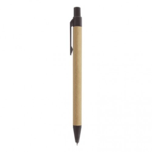 Esferográfica de cartão reciclado, detalhes em plástico. Escrita azul. Dimensão da Esferográfic..