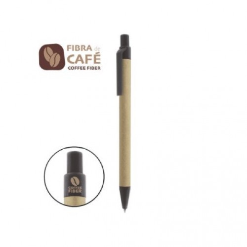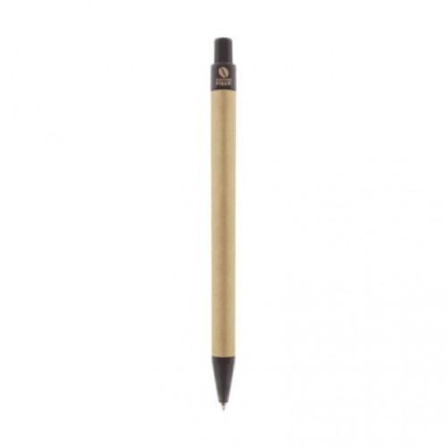 Caneta sustentável feita a partir de fibra de café e cartão reciclado. Escrita azul. Medidas: 14 cm.