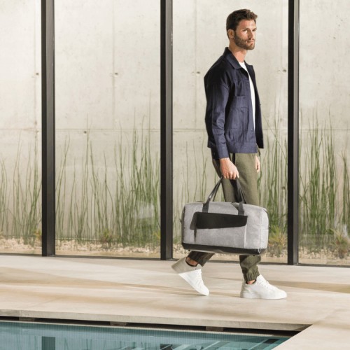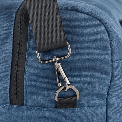 O MOTION BAG é um saco de viagem prático e elegante em 600D catiónico e polipele de alta qualidade. O compartimento principal espaçoso é ideal para guardar roupa e outros utilitários necessários para viagens curtas. Possui ainda quatro bolsos no interior e bolso frontal com uma pala de desenho assimétrico, que caracteriza esta linha e lhe confere um design moderno. Fecha com íman. A praticidade deste saco é acompanhada por um design pormenorizado e cuidado que conduzem a detalhes como o espaço para colocar a etiqueta de nome, os pés metálicos que protegem o saco quando pousado, o desenho do fecho que permite ser controlado por cadeado (não incluído). As alças são desenhadas para serem ajustáveis e confortáveis. Fornecido em saco em non-woven. 500 x 300 x 250 mm | Saco em non-woven: 700 x 450 x 75 mm