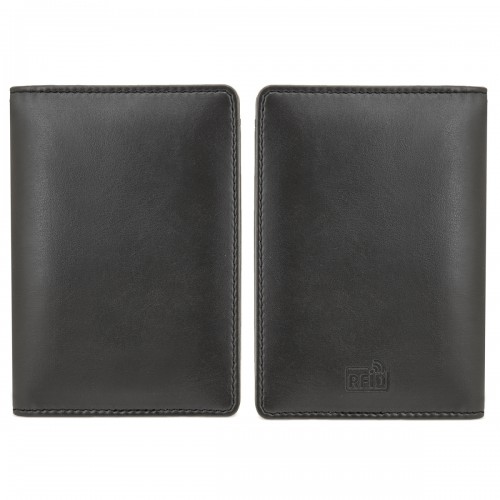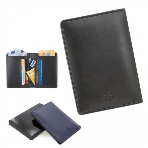 Porta-cartões em polipele, com tecnologia RFID. Elegante e com um preço imbatível. Fornecida em caixa de oferta. Medidas do porta-moedas: 8,5 x 11 x 0,8 cm.