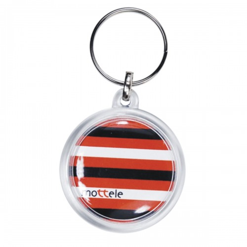 Porta-chaves em acrílico, com formato redondo. Personalizado com inserção de papel em 2 faces (Ø37mm) e tampa em acrílico. (Vendido em múltiplos de 100 pcs)