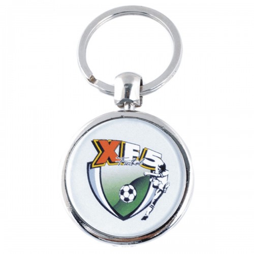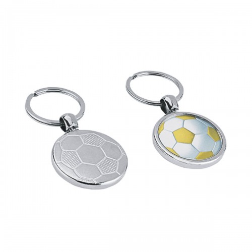 Porta-chaves MFT em metal, com formato de bola de futebol. Personalizado em 1 face com inserção de papel (Ø30mm), e tampa em acrílico. 3 cm