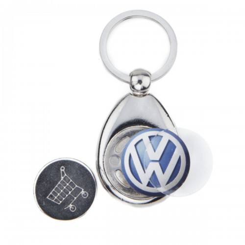 Porta-chaves MH-25 CARRO em metal, com ficha de €1,00 para carrinho de compras. Personalizado em 1 face com inserção de papel (Ø25mm), e tampa em acrílico. 2,5 cm