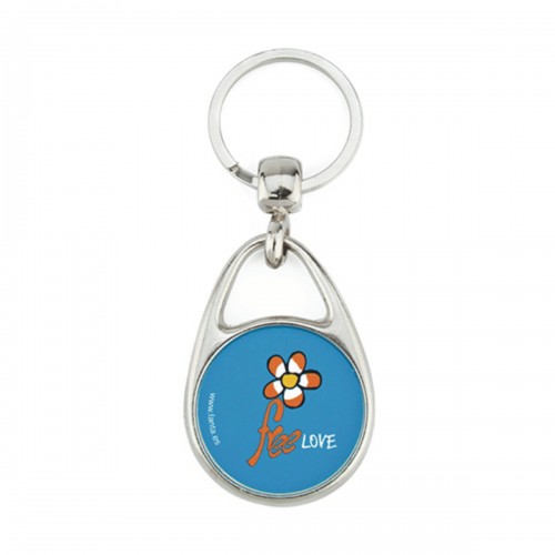 Porta-chaves MFT em metal, com formato de bola de futebol. Personalizado em 1 face com inserção de papel (Ø30mm), e tampa em acrílico. 3,5 x 4,5 x 3 cm