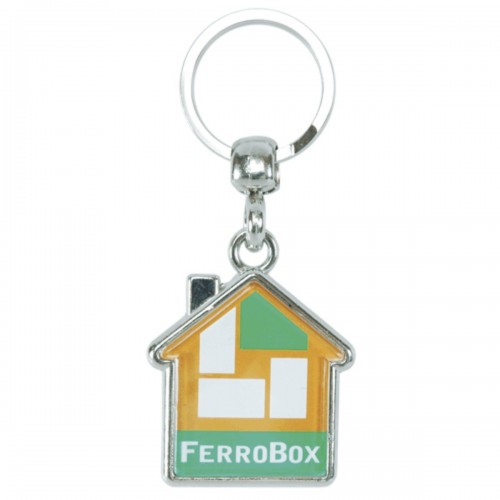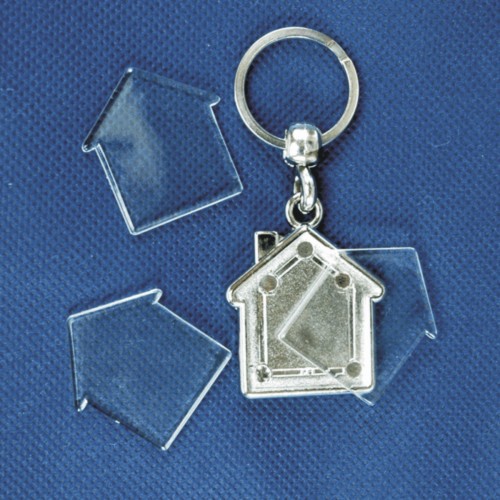 Porta-chaves MY-D em metal, com formato de casa. Personalizado em 2 faces com inserção de papel (34x37cm), e tampa em acrílico. 3,4 x 3,7 cm