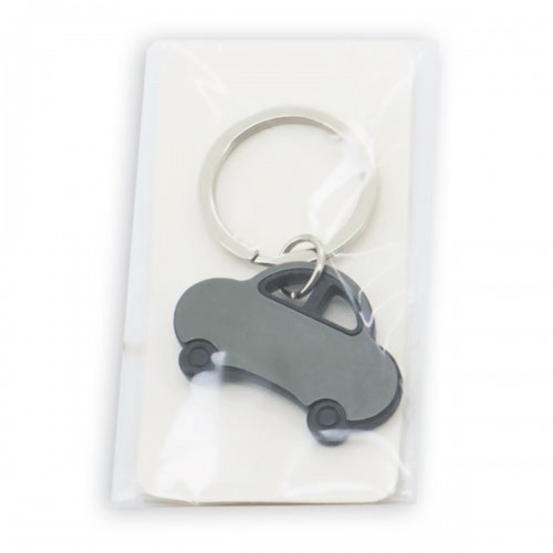 Porta chaves composto por duas lâminas de liga de titânio, e uma de plástico entre ambas. Fornecido em bolsa individual. 4,2 x 3 cm.