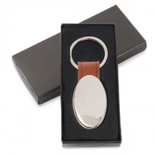 Porta chaves metálico com detalhe da fita em PU imitação de fibra de carbono. Uma elegante e moderna..