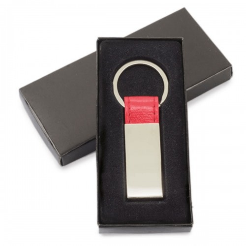 Porta chaves metálico com detalhe da fita em PU imitação de fibra de carbono. Uma elegante e moderna..