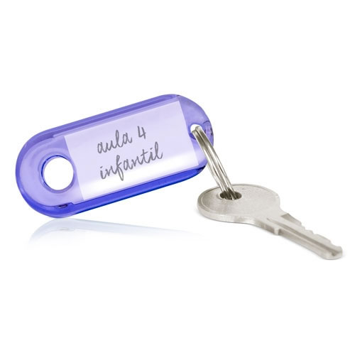 Porta-Chaves em ABS e polipele. Medidas do porta-chaves: 2,3 x 3,4 cm (etiqueta).PREÇO DE GRAVAÇÃO S..