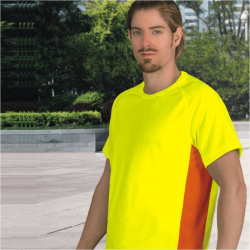 T-shirt desporto de manga curta, gola redonda e desenho bicolor. Confecionada em tecido técnico respirável Bird-Eye que facilita a secagem rápida e a eliminação do suor. Laterais com tecido técnico micro-perfurado que aumenta a respirabilidade e a ventilação. Manga ranglan que proporciona maior conforto e promove a mobilidade.