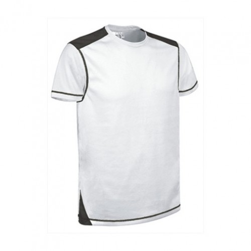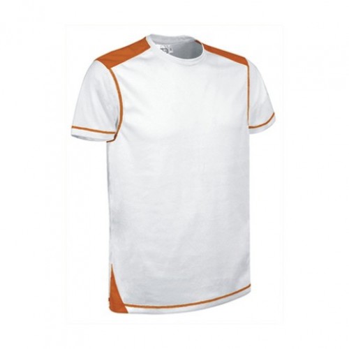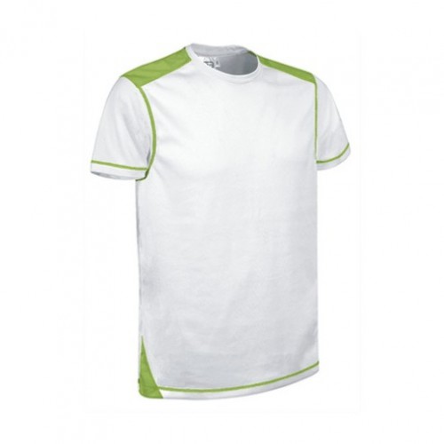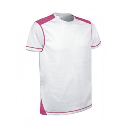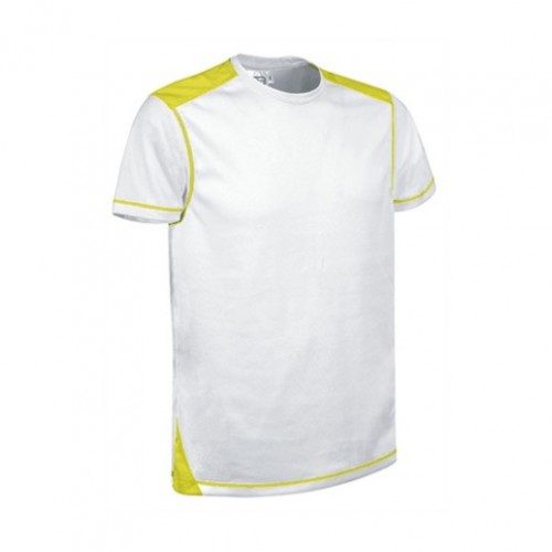 T-shirt desporto de manga curta, gola redonda e desenho bicolor. Confecionada em tecido técnico respirável Bird-Eye que facilita a secagem rápida e a eliminação do suor. Desenho bicolor e facilmente combinável: costuras, ombros e detalhes laterais em cores brilhantes combinados em contraste com branco.