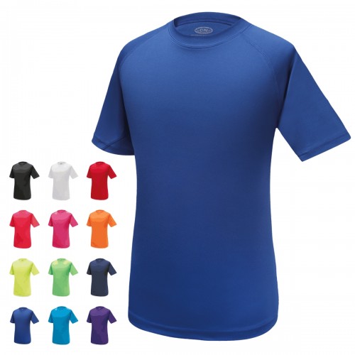 T-shirt 100% poliéster técnico, 135grs./m2. Disponível numa grande variedade de cores. Modelo de criança.