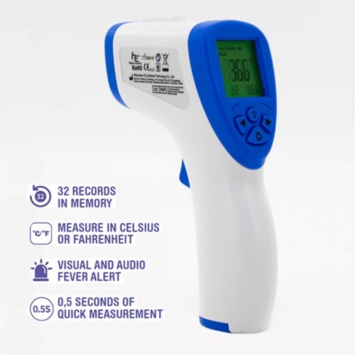 Medição de temperatura rápida e confiável, controla e impede o acesso de pessoas com febre a creches, escolas, institutos, universidades, escolas, empresas e instituições em geral. A vantagem deste termômetro é o seu funcionamento remoto, evitando o contato direto. Indicação de temperatura por cores.