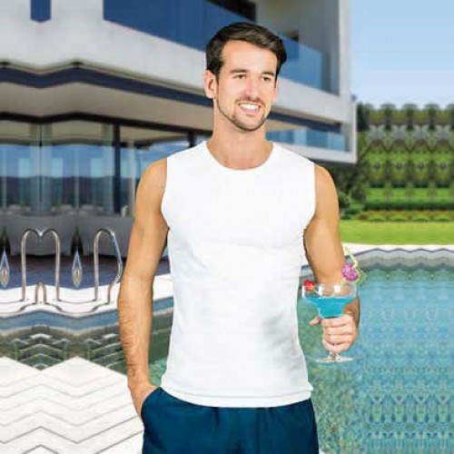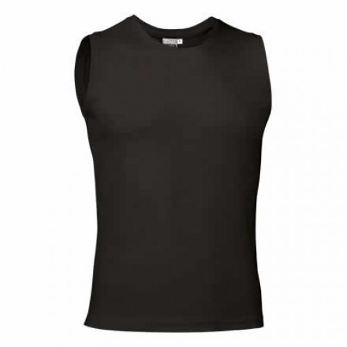 T-shirt sem mangas elástica, corte estreito. Confeccionada em tecido de malha de algodão ring spun com elastano suave, confortável e flexível. Gola redonda e cavas com canalé elástico que se adaptam confortavelmente.