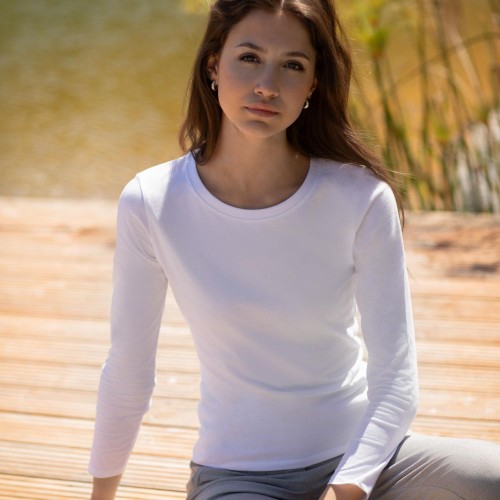T-shirt de manga manga comprida para senhora - 150g/m2• Malha jersey 100% algodão • Costura dup..